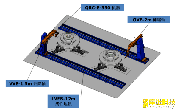 根據驅動箱焊接結構尺寸特點和要求分析,焊接工作站為雙機器人雙工位機器人焊接工作站,兩條平行的12m有效行程地面軌道上各安裝有一個三維伸縮臂,每套伸縮臂上配有一套七軸弧焊機器人,兩機器人可獨立工作或者一同工作,如圖2所示。弧焊機器人采用QRC-E-350型號關節型手臂機器人,其所有軸都有一個極大的旋轉范圍,使其具有非常大的靈巧性能和工作范圍。機器人的手臂設計細長而緊湊,且各軸的動態性能高,保證了優良的焊接精度、速度和可重復性。