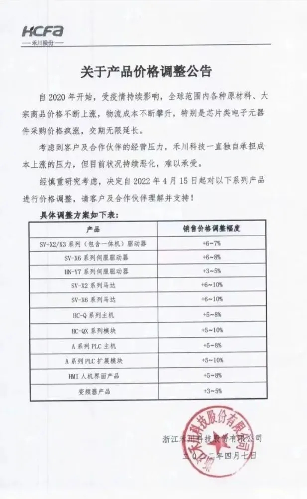 ABB、禾川、納博特、來(lái)福諧波等廠商公開(kāi)宣布漲價(jià),而私下調(diào)整價(jià)格的無(wú)疑有更多。