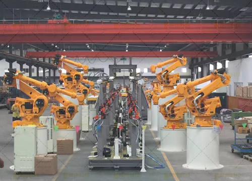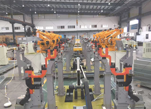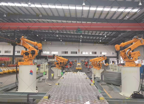 整線由彎板切割機(jī)器人工作站、中板坡口機(jī)器人工作站、座體機(jī)器人焊接工作站、中部槽機(jī)器人焊接工作站及中部槽總成機(jī)器人焊接線組成,包含整套機(jī)器人系統(tǒng)、機(jī)器人滑道、桁架梁、機(jī)器人焊接系統(tǒng)、兩軸變位機(jī)、彎板切割機(jī)、火焰割炬、激光跟蹤系統(tǒng)、焊接平臺、柔性組對工裝夾具、焊接電源、煙塵凈化系統(tǒng)等部分構(gòu)成