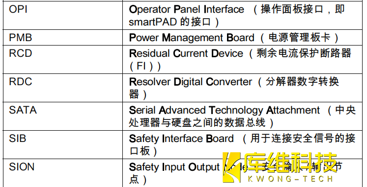 為使操作人員更加簡便開展與 工業機器人KR C4 控制系統相關的工作,這里羅列了部分最主要的縮寫